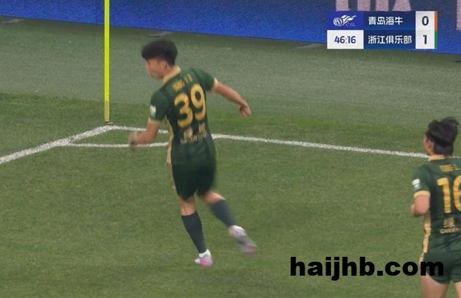 第19分钟,王钰栋在左路得球,随后假动作过人,并传到中路。禁区里,队友弗兰克头球攻门,皮球被牟鹏飞扑出。上半场结束,浙江队0-0战平青岛海牛。
