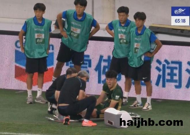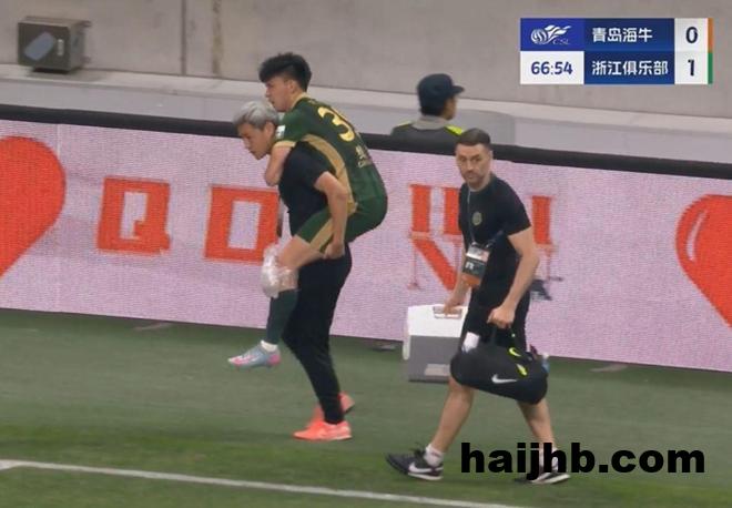 在场外,队医对王钰栋进行了简单的治疗。随后,队医确认王钰栋已经无法比赛,并直接将王钰栋背离球场。