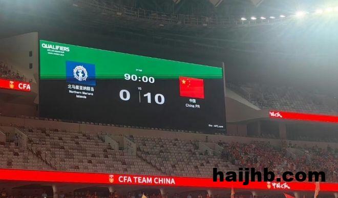北马里亚纳群岛球员体力下滑严重,完全无法抵挡中国队的进攻。第74分钟,蒯纪闻也进球了。之后拜合拉木连进2球,完成帽子戏法,彻底踢爆北马里亚纳群岛。随后,朱鹏宇门前成功捡漏,再进一球。第89分钟,王钰栋轰出一脚无解世界波,成功戴帽。最终的比分定格为10-0,中国U23狂胜北马里亚纳群岛U23。