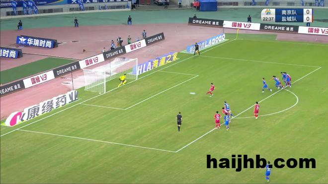 上半场第22分钟,盐城队队长胡书铭利用点球机会,射进一球,为盐城队拿下1分。
