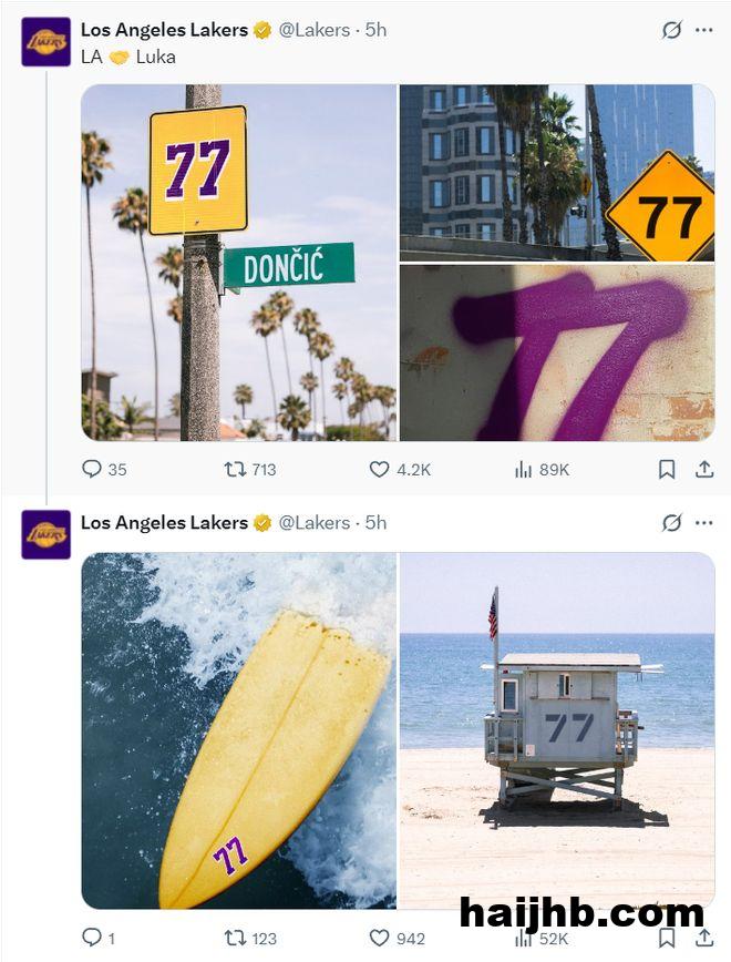 洛杉矶这座大城市很多地方都打了上77的球衣号码,也算是全程欢庆东契奇在这一天与LAL续约。