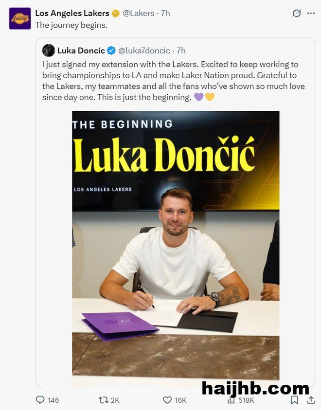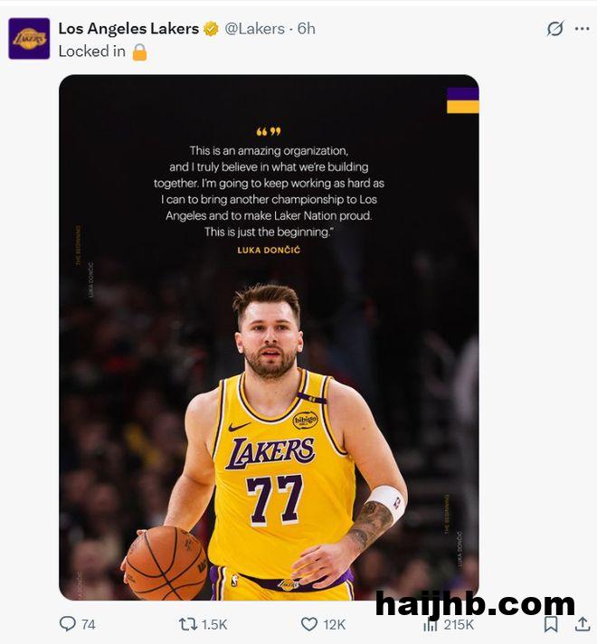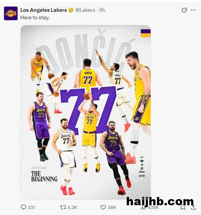 12分钟之前湖人官方发布了东契奇与球队续约的Vlog。