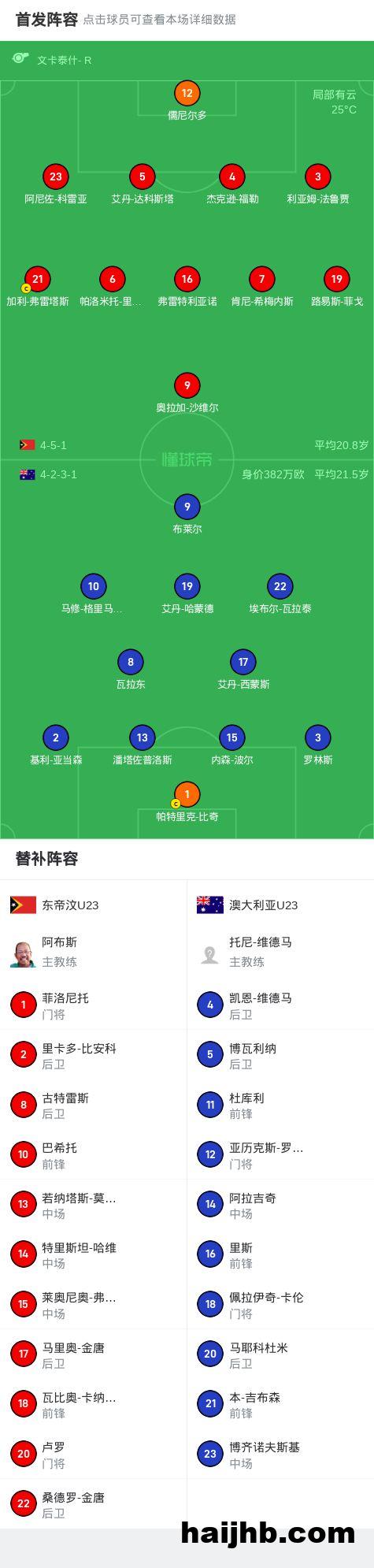 北京时间9月6日U23亚洲杯 预选赛 第2轮,东帝汶U23对阵澳大利亚U23。最终比分东帝汶U23 06 澳大利亚U23。