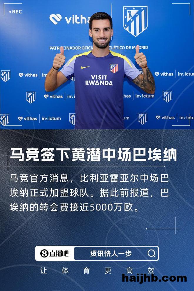 直播吧07月02日讯 官方消息,马德里竞技从比利亚雷亚尔签下23岁攻击手巴埃纳。据罗马诺消息,这笔转会总价5000万欧。