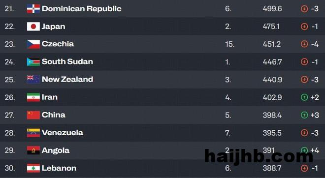 德国男篮在拿到欧锦赛冠军后,排名反超塞尔维亚来到第二名,土耳其在本届欧锦赛拿到亚军,积分排名上升15位直接来到第12名。