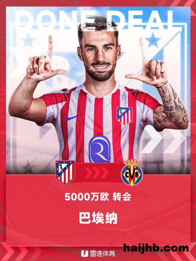 雷速体育6月9日讯 据马竞官方发布,球队正式签下比利亚雷亚尔前锋巴埃纳,此前据多家媒体报道,转会费约为4500万欧加500万附加费用。