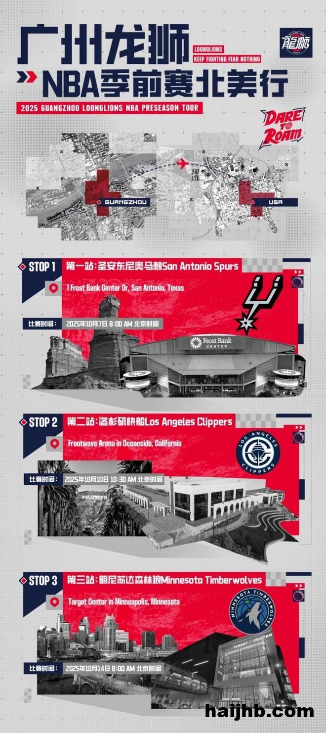 广州男篮NBA季前赛具体赛程如下: