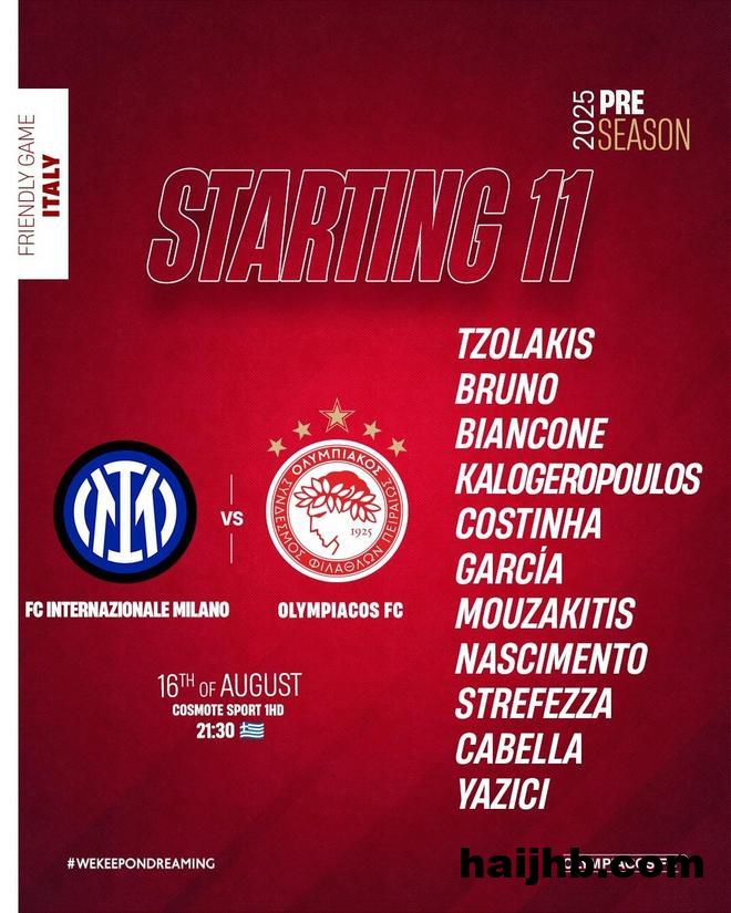 北京时间8月17日2:30,国际米兰与奥林匹亚科斯在圣尼古拉球场进行一场热身赛,赛前双方首发出炉。 好博体育新闻中心 好博体育(中国)官方网站-HAOBO SPORTS新闻中心 普利西奇丨给米兰城涂上一抹红色 图集丨米兰德比已连续6场不败