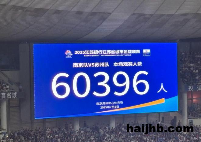 据现场播音员播报,本场比赛南京奥体中心体育场。涌入了60396名观众,刷新了该项赛事最高观众人数纪录。此前的纪录是上一轮苏州vs扬州,当时昆山奥体中心共有43617现场观战。这一纪录,仅持续了6天,足够展现苏超如今的火爆关注度。