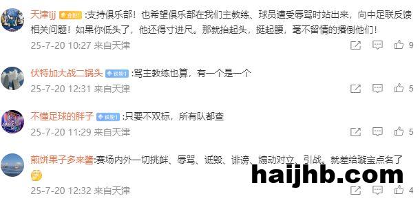 不过,津门虎在这条社媒下开启了评论精选。而在津门虎专访中足联的微博下,津门虎球迷仍然表示不满,“支持俱乐部!也希望俱乐部在我们主教练、球员遭受辱骂时站出来,向中足联反馈相关问题!如果你低头了,他还得寸进尺。那就抬起头,挺起腰,毫不留情的撂倒他们!”