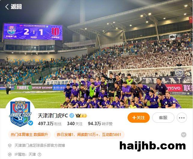周日,天津足协、天津津门虎先后发表声明,表示坚决抵制看台违规行为。令人惊讶的是,天津津门虎俱乐部将官方微博背景图改成了客场战胜成都蓉城一战的图片。