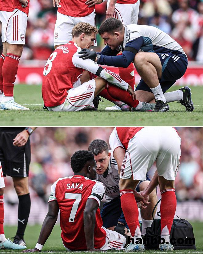 雷速体育8月24日讯 英超联赛第2轮,阿森纳5-0大胜利兹联,开赛2连胜暂时领跑联赛积分榜。但取胜的同时,阿森纳也面临接踵而至的伤病隐患,球队主力攻击手厄德高和萨卡均在比赛中出现了伤病情况无法坚持被提前换下。