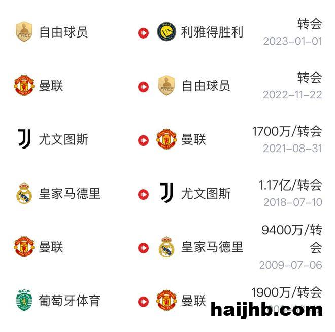 C罗职业生涯至今共经历了葡体、曼联、皇马、尤文以及利雅得胜利五家俱乐部,期间他曾四次与俱乐部达成续约,其中两次是与皇马,一次是与曼联,最近一次就是与利雅得胜利。