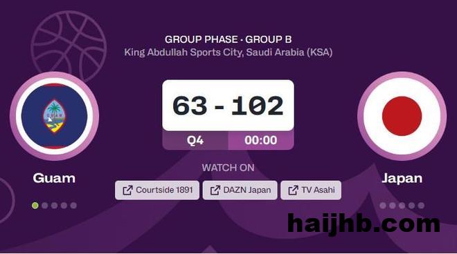 直播吧8月10日讯 男篮亚洲杯今天继续进行,日本男篮102比63大胜关岛男篮。