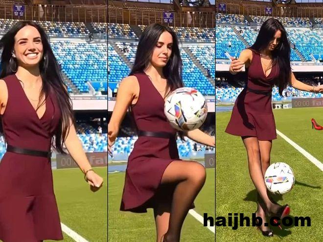 为了吸引球迷的注意,埃莉诺拉还身穿高跟鞋和连衣裙,在场边踢起了足球,以展示自己的专业性。