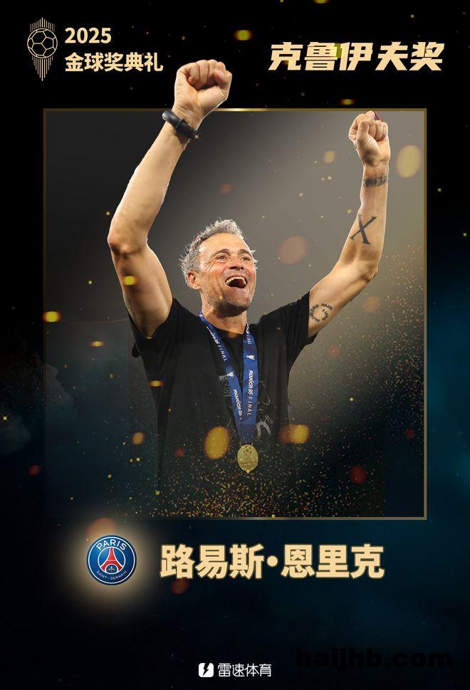 雷速体育9月23日讯 2025年金球奖颁奖典礼今天进行,巴黎主帅恩里克获得2025年克鲁伊夫奖,即年度最佳男足教练。