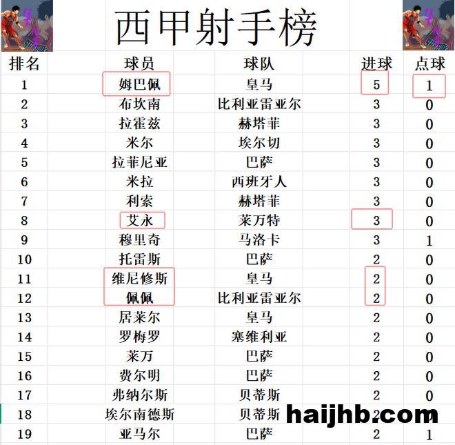 射手榜方面,姆巴佩今天虽然浪费了几次机会,但是他状态还是不错,打入一球后,新赛季依然是场均1球,5轮打入5球,继续稳居榜首。艾永破门后,追上拉菲尼亚,米尔,穆里奇等人3球并列第2。维尼修斯中柱无缘破门,还是和莱万,亚马尔等人2球刚好挤入前十。