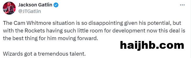 北京时间7月6日,据名记Shams报道,火箭队已同意将前锋卡姆-惠特莫尔交易至奇才队,换回了两个次轮签(2026年公牛的次轮签和2029年国王的次轮签)。这笔交易引起热议,火箭多位媒体人发表了自己的看法。