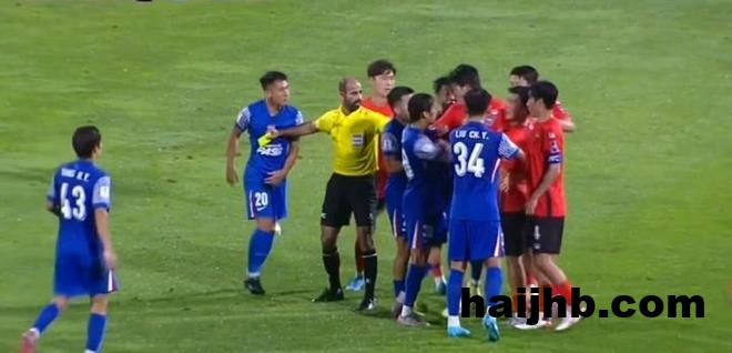 随后,双方球员一拥而上,至少15名球员互相推搡,不过,双方球员很快恢复了冷静。分开双方球员之后,主裁判向于汉超出示了黄牌。