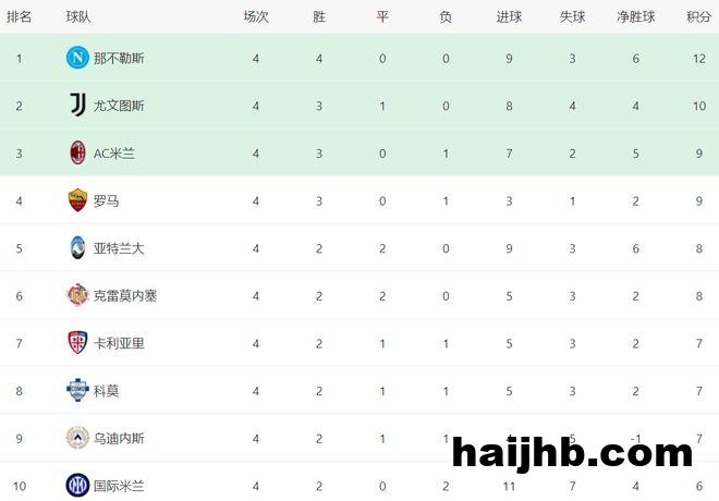 那不勒斯是意甲唯一保持全胜的。排在那不勒斯身后的尤文图斯3胜1平,拿到10分。AC米兰和罗马则只拿到9分。至于另一支夺冠热门球队国际米兰就有些拉胯了,4场联赛只取得2胜2负的成绩,只拿到6个积分,排名第10。孔蒂的目标自然是率领那不勒斯夺冠。不过,难度有点大。毕竟本赛季那不勒斯需要踢强度非常大的欧冠比赛。在多线作战的情况下,以那不勒斯的阵容深度,要想保持稳定的战绩是极其困难的事情。孔蒂能够做到吗?拭目以待!