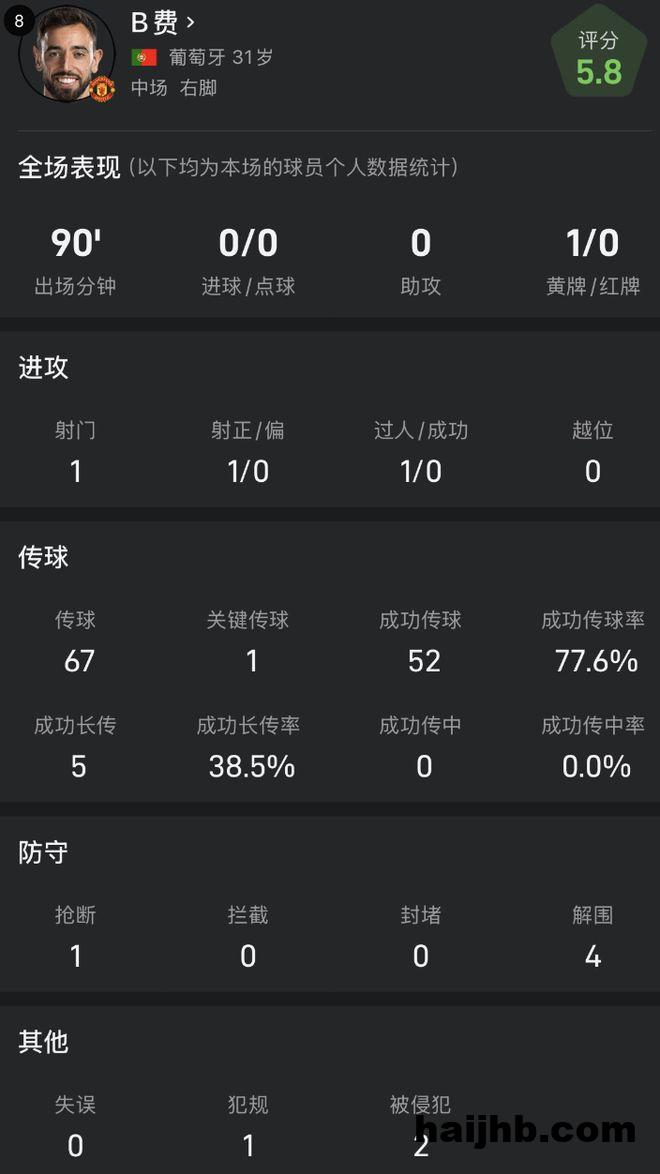雷速体育9月27日讯 英超第6轮比赛,曼联客场1-3不敌布伦特福德。本场比赛,B费表现低迷,他在第75分钟罚丢了姆伯莫创造的点球,这也是他本赛季第二次罚丢点球。