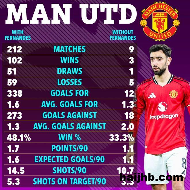 B费自从2020年加盟曼联之后,308次出场贡献196次进球和助攻,对于红魔而言,这么长时间缺少他,完全是前所未有的情况。这绝对不会是一个快乐的圣诞节。