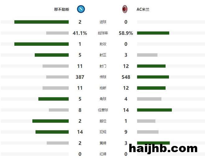 第22分钟,迈尼昂扑救脱手,惊出红黑军团一身冷汗,好在埃尔马斯的打门没有命中目标,第37分钟AC米兰获得反击机会,萨勒马科尔斯带球推进到前场后,分给了无人盯防的恩昆库,但后者的打门放了高射炮,逃过一劫的那不勒斯,在2分钟之后打破场上平衡,迈尼昂左路下底传中,造成迈尼昂脱手,内雷斯补射建功,帮助那不勒斯取得了1-0的领先。