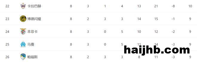因为4-2的比分,让本菲卡在净胜球上正好超过马赛,升入积分榜第24位,也就是附加赛区的最后一名,最终依靠1个净胜球优势压哨晋级附加赛。