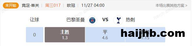 竞足 周三017 欧冠巴黎圣曼VS热刺