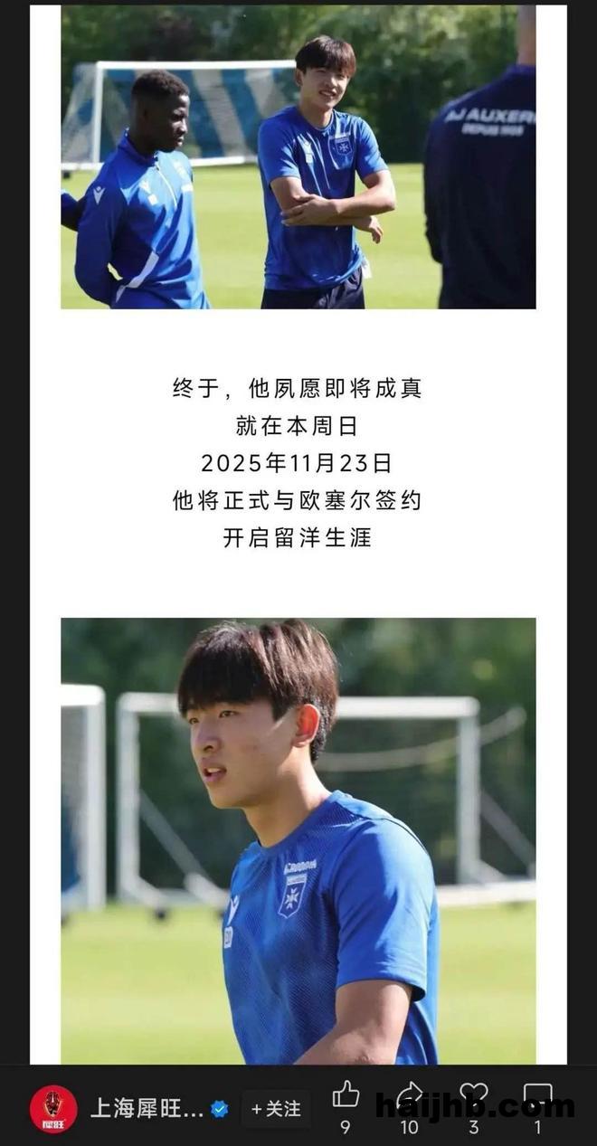 北京时间11月21日,欧塞尔赞助商犀旺发文称魏祥鑫将签约欧塞尔,后又将此消息删除。