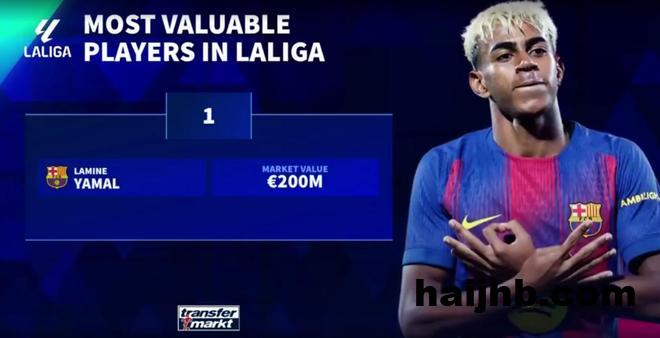 1 巴萨-亚马尔(18岁) 2亿欧(较上期保持不变)