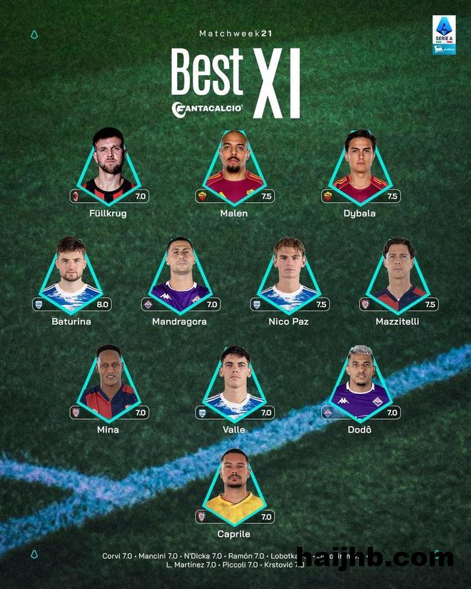 马齐泰利(卡利亚里)7.5分、尼科-帕斯(科莫)7.5分、曼德拉戈拉(卡佛罗伦萨)7.0分、巴图里纳(科莫)8.0分